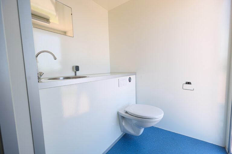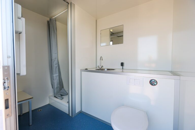 Douche, toilet en wastafelDeze sanitairwagen is voorzien van een douche, toilet en wastafel en biedt een complete, mobiele oplossing voor sanitair op locatie. Dankzij de uitvoering op wielen is het eenvoudig te verplaatsen en flexibel inzetbaar.