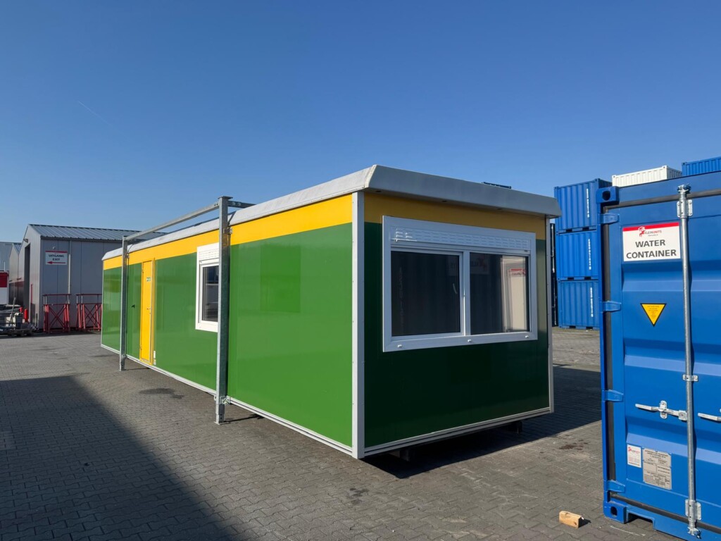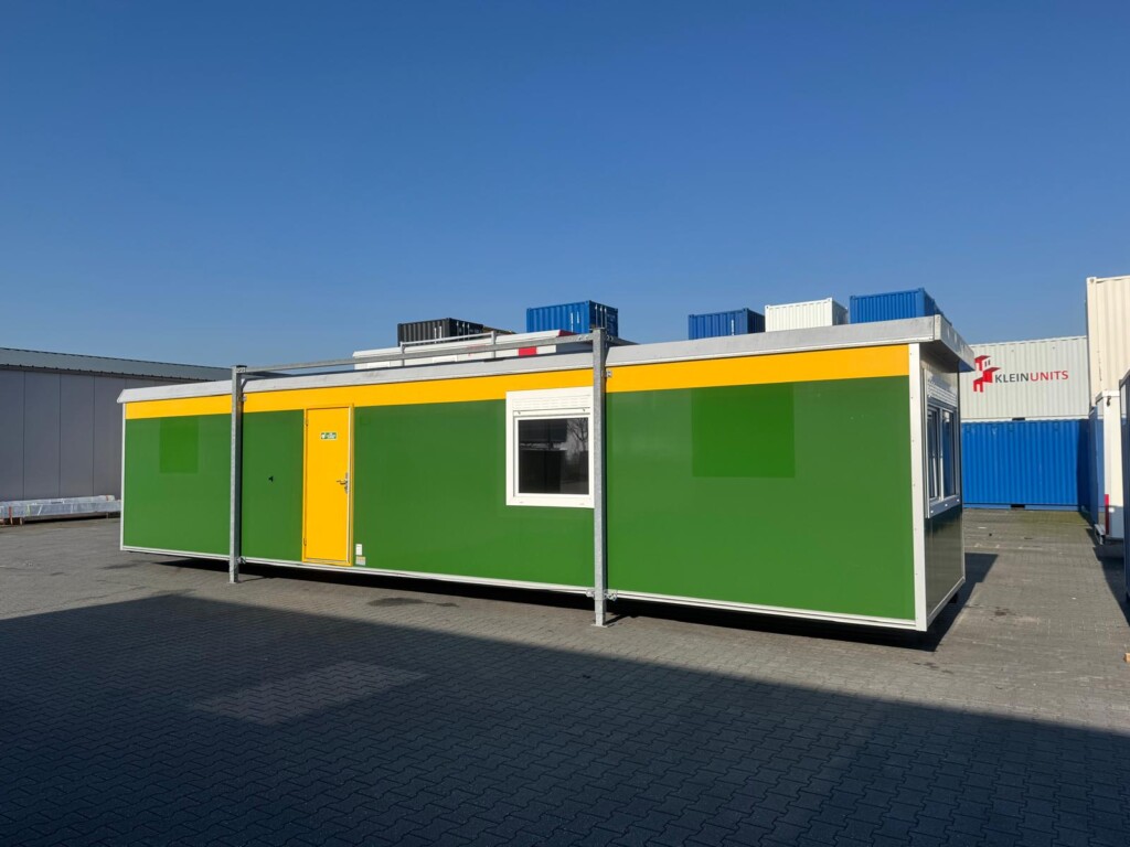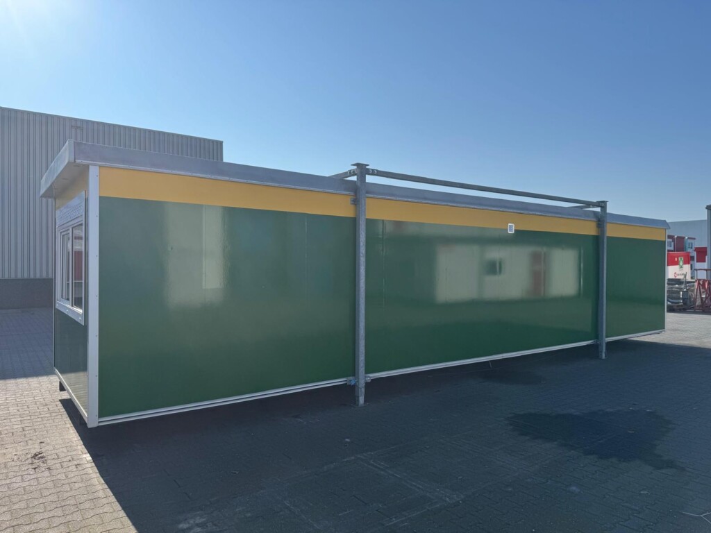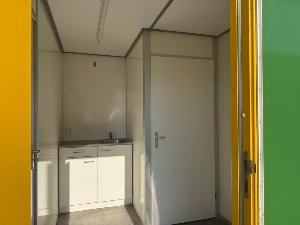 Keuken, toilet + 2 ruimtesDeze ruime kantoorunit biedt veel werkruimte voor tijdelijke kantoorfuncties op locatie. Ideaal wanneer meerdere werkplekken gecombineerd moeten worden in een overzichtelijke kantoorruimte.