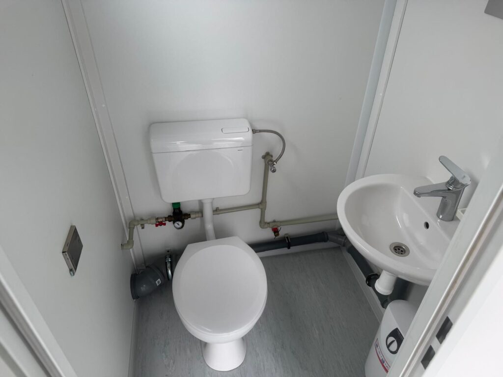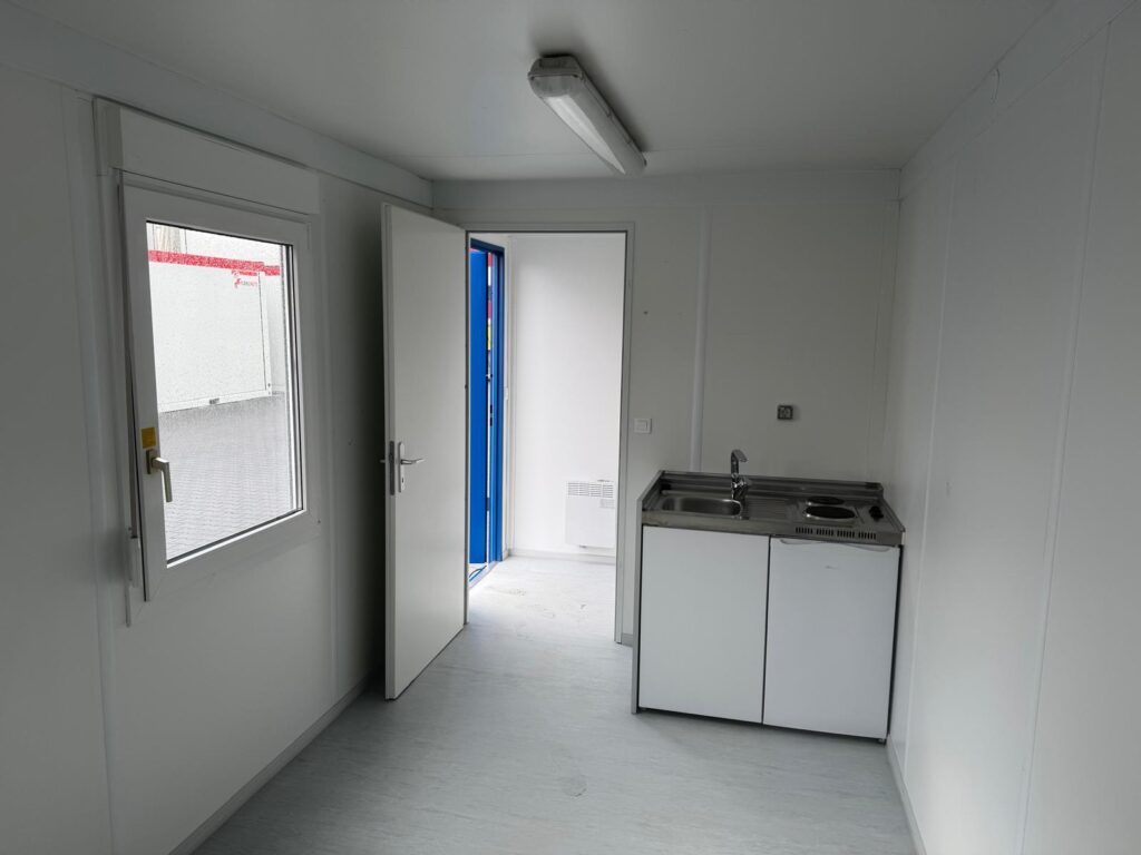 Kantoorunit – ca. 6 x 2.44 meter – met keuken en toilet – gebruikt