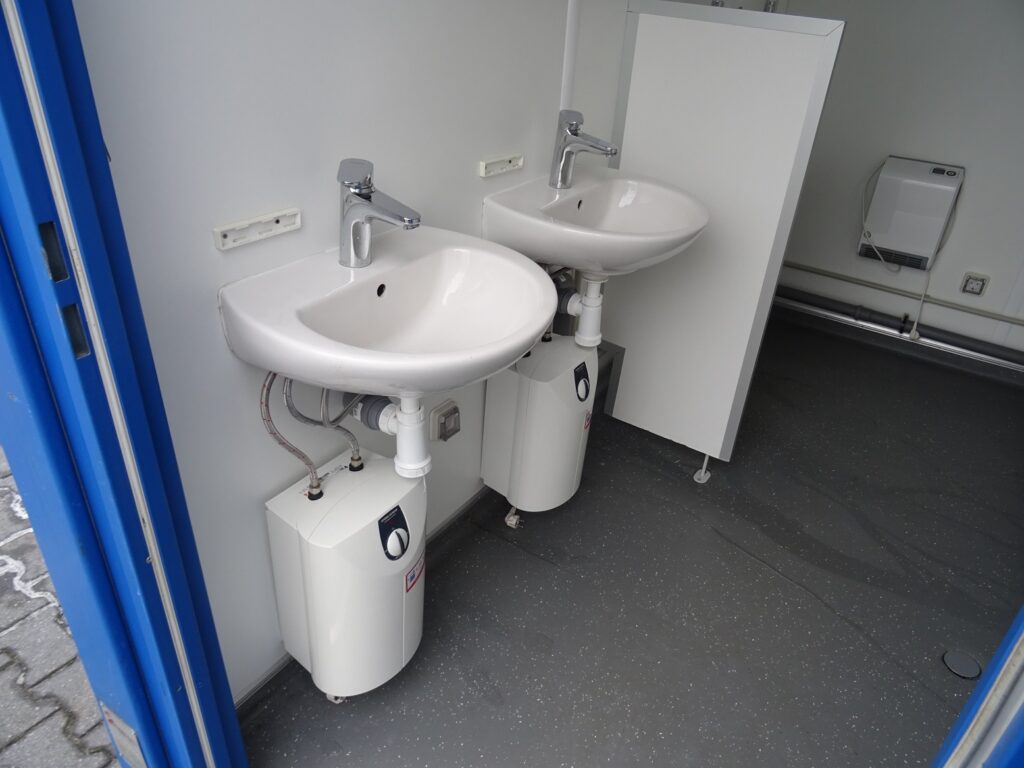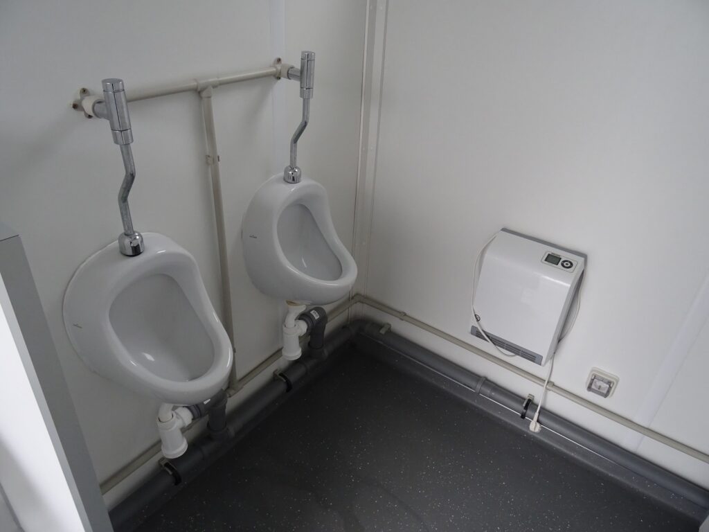 Sanitair unit met 2 toiletten, 2 urinoirs en dubbele wastafel (verhuurd)